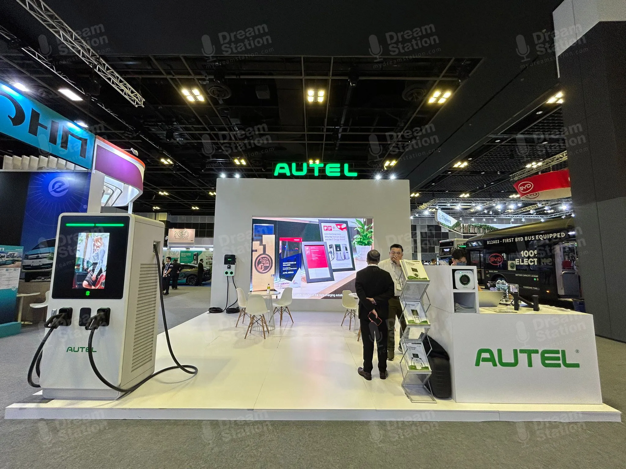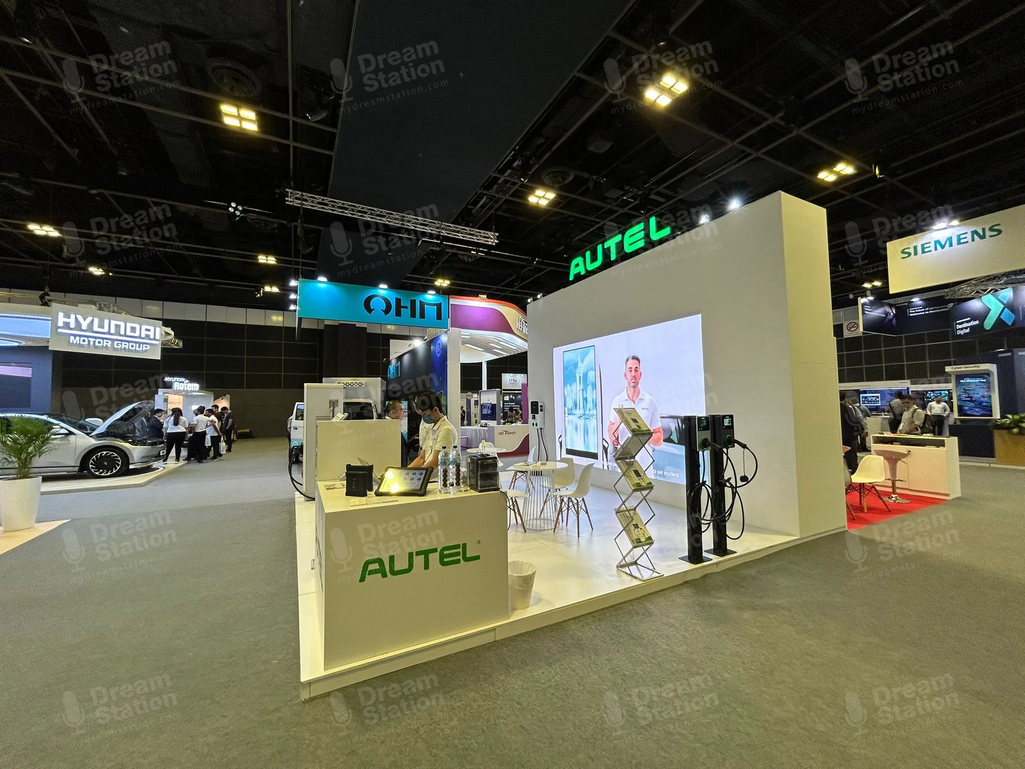 This year’s Singapore International Transport Congress and Exhibition was held in the Suntec City Convention Centre. Dream Station saw to the construction of Autel Technologies’ Exhibition Booth, incorporating their sleek sand elegant design aesthetic and featuring a high-fidelity LED Wall and display of their latest and most successful innovations in electric vehicle technology and charging, such as the Autel Maxicharger.